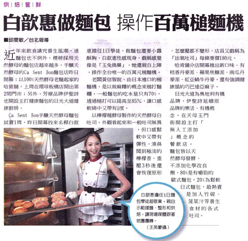 本專案孟橙公關協助新創品牌Ca Sent Bon針對競爭優勢,主打健康樂活族群,定位100% 手釀天然酵母麵包為訴求,除了邀請名模白歆惠擔任活動代言,搭配父親節議題,更從民生健康問題、教育消費者認識天然酵母、主廚人物故事…等針對不同角度切入,成功吸引媒體及消費者目光,極大化媒體曝光效果。
